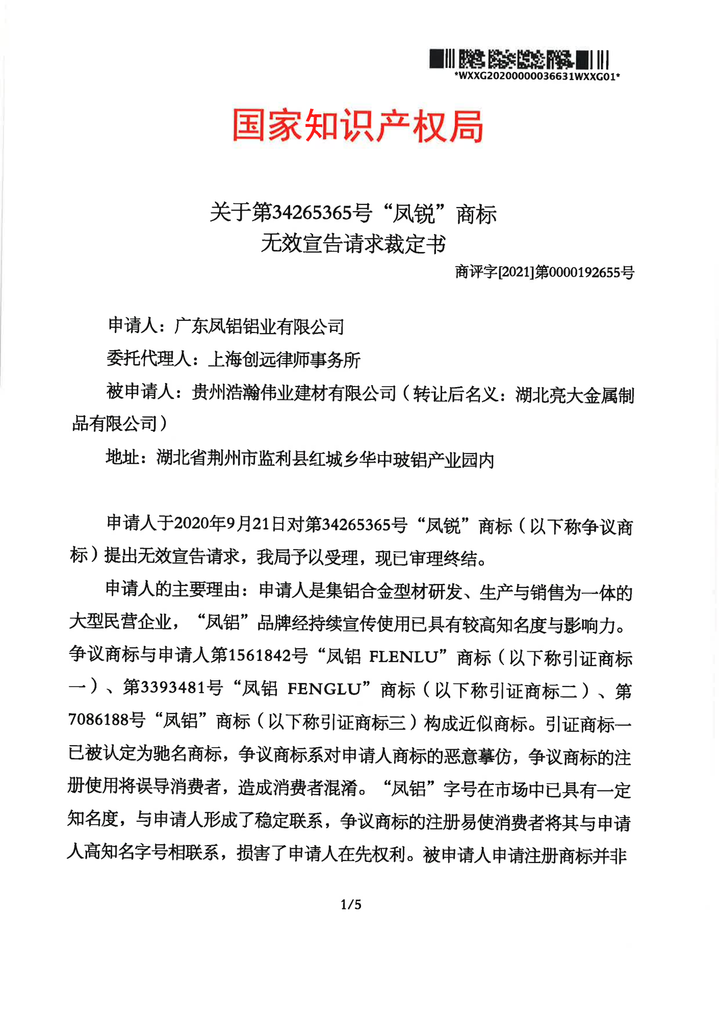重庆辉知队 | 国家知识产权局:“凤锐”商标无效